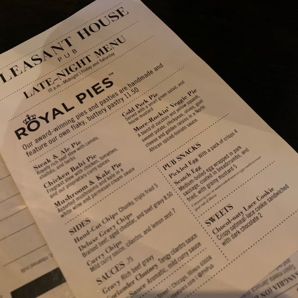 Pub Menu Pleasant House Pub British Inspired Public House In Chicago Illinois